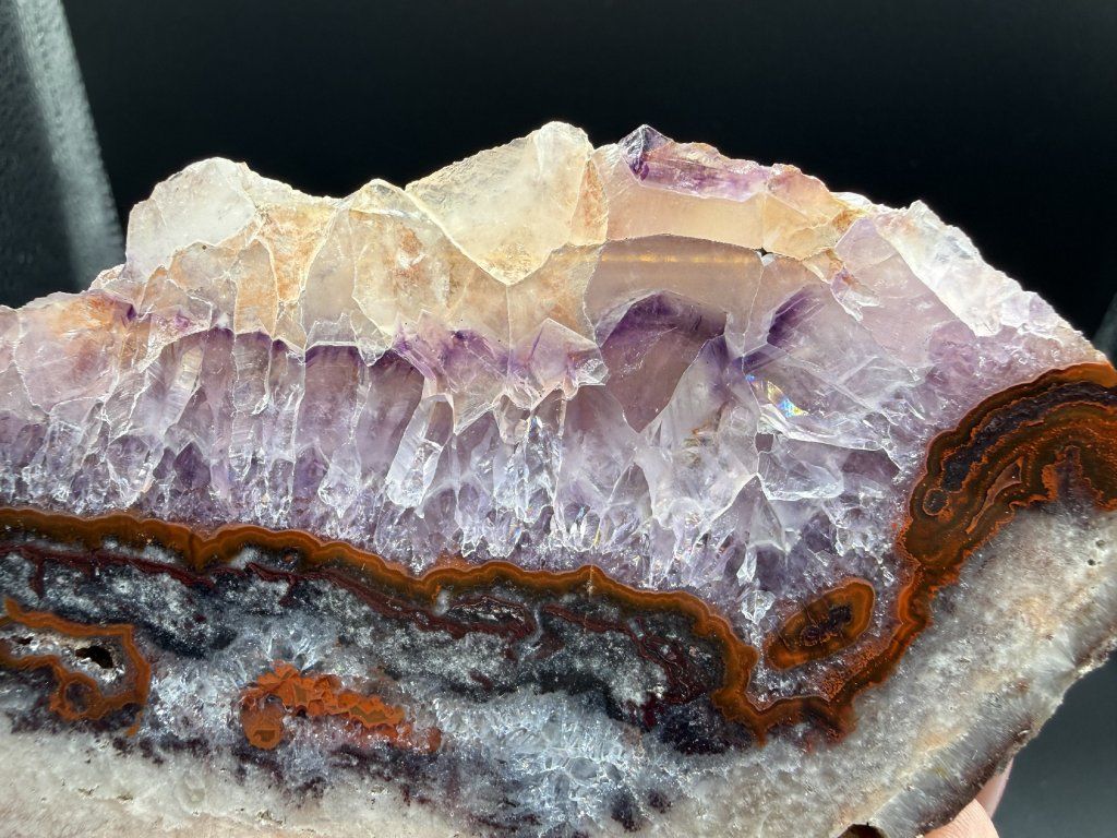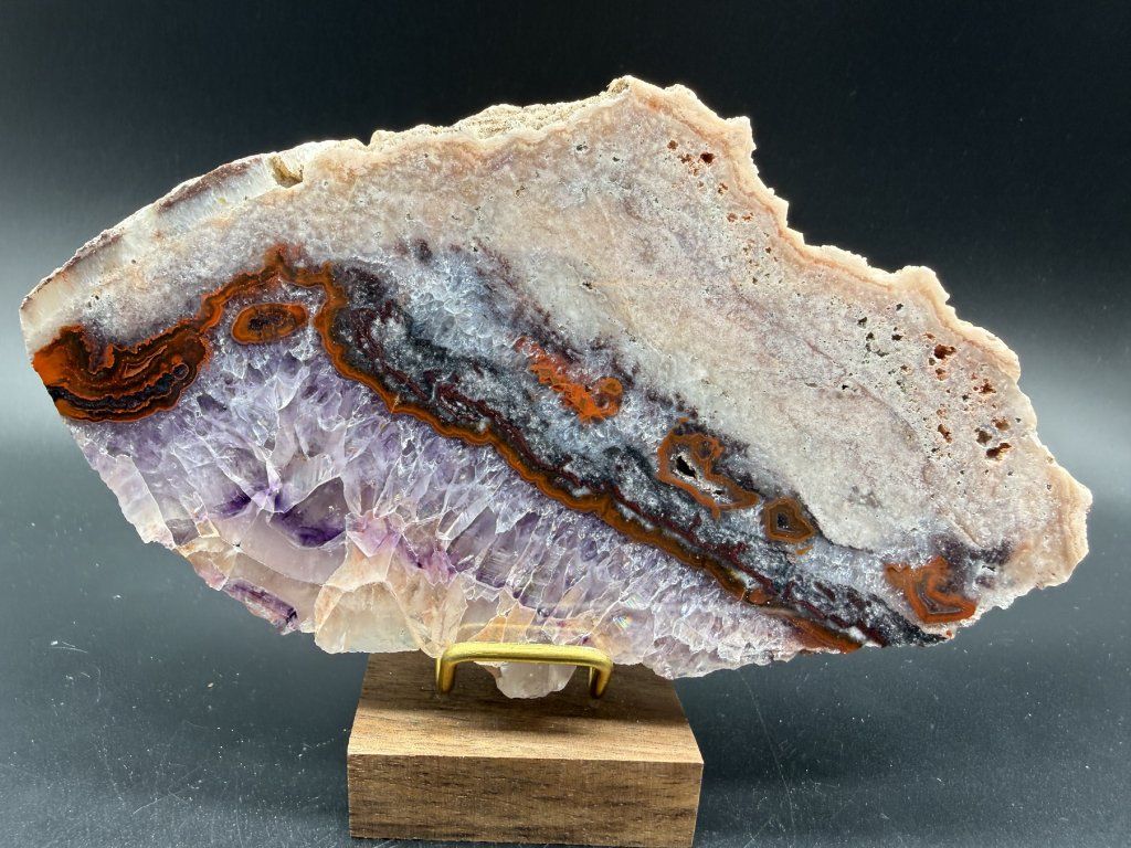 Leštěný vzorek achátu s ametystem z lokality Klášterecká Jeseň.