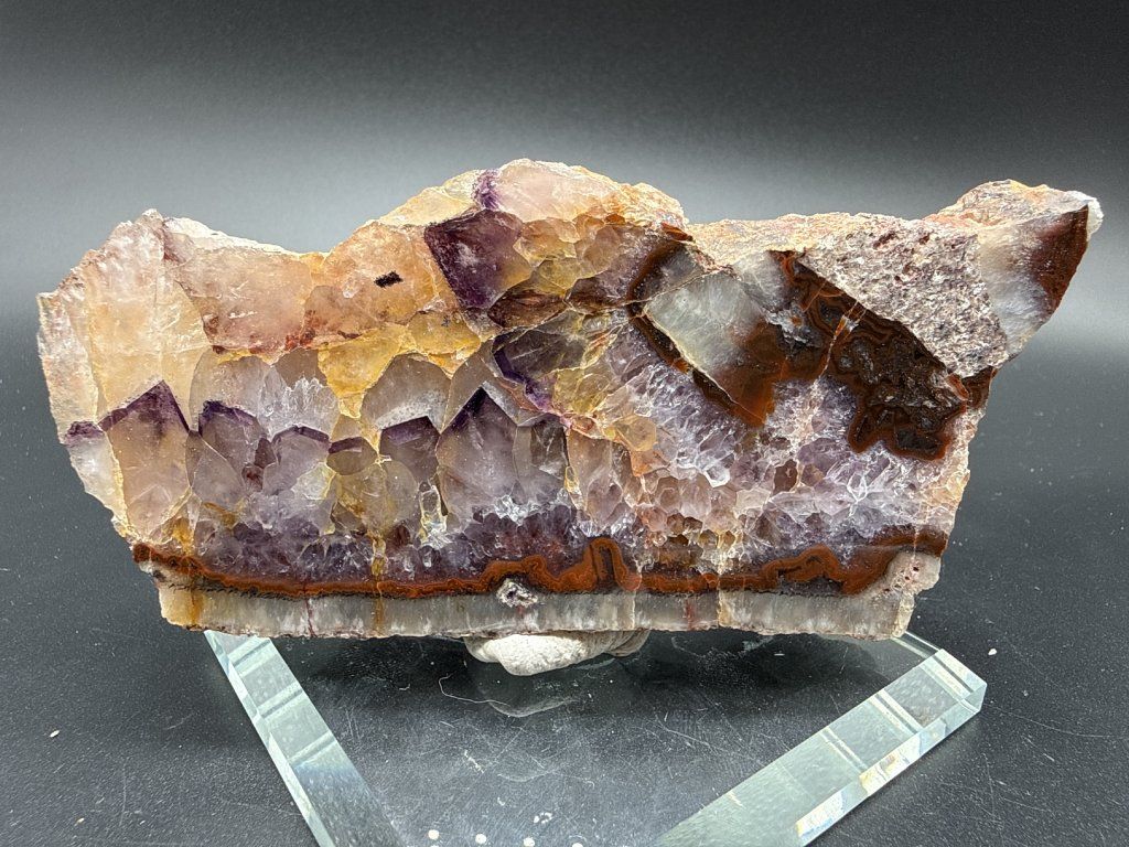 Leštěný vzorek achátu s ametystem z lokality Klášterecká Jeseň.