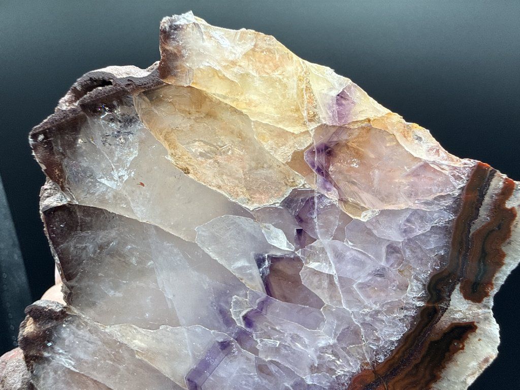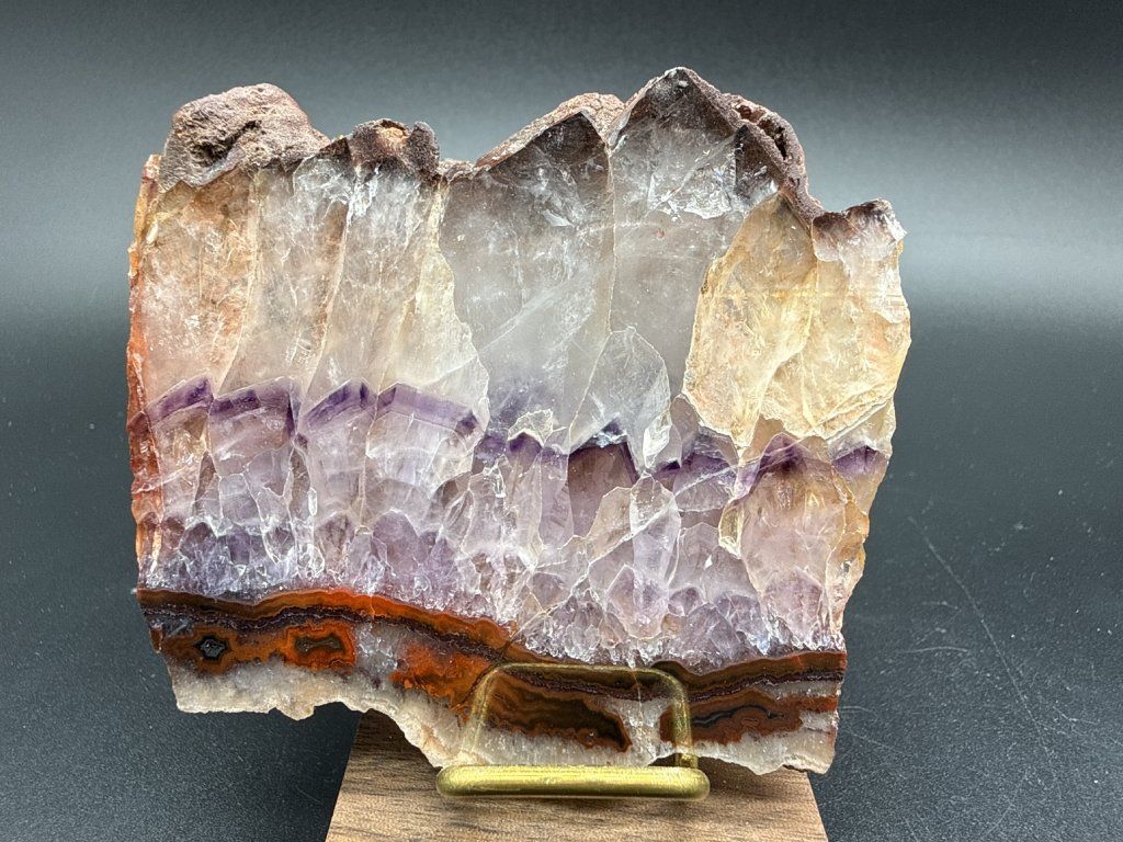 Leštěný vzorek achátu s ametystem z lokality Klášterecká Jeseň.