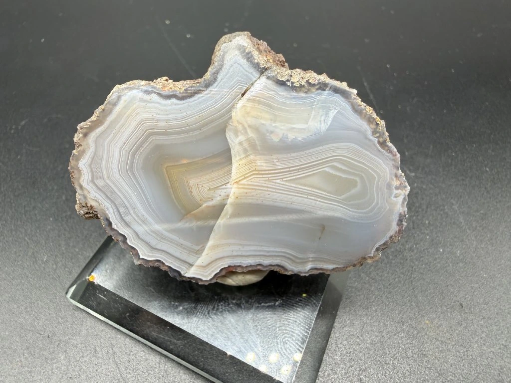 Krásný menší leštěný achát z Morcínova. Estetický vzorek achátu z České Republiky.