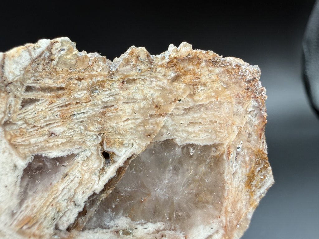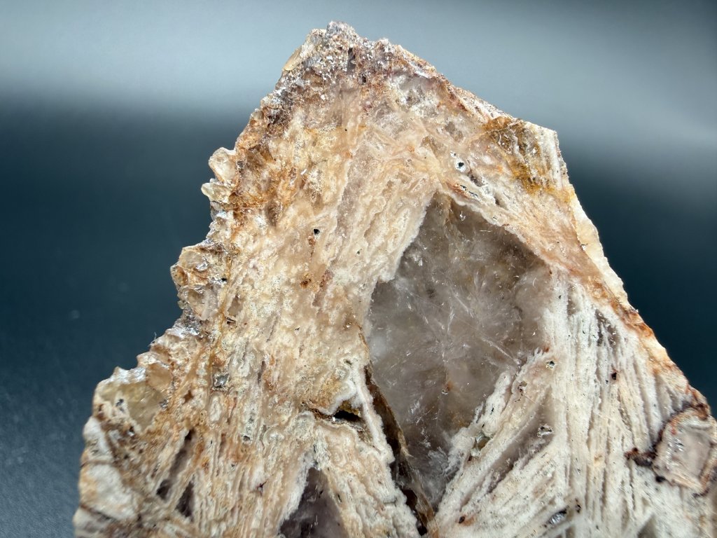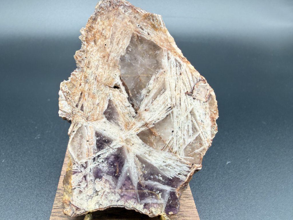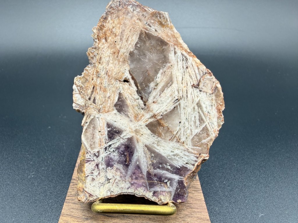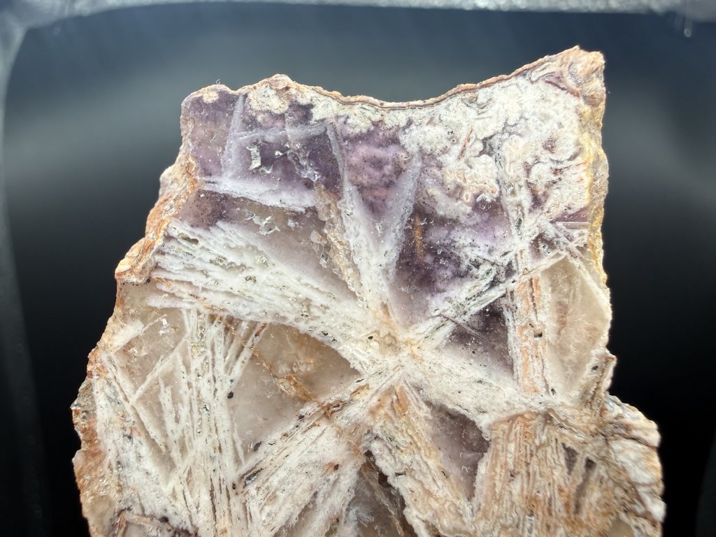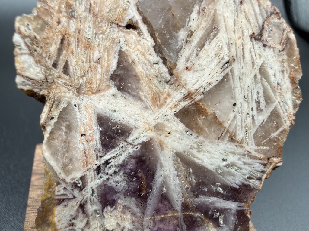 Leštěný vzorek achátu a perimorfózy po lištovitých minerálech z lokality Mýtinka.