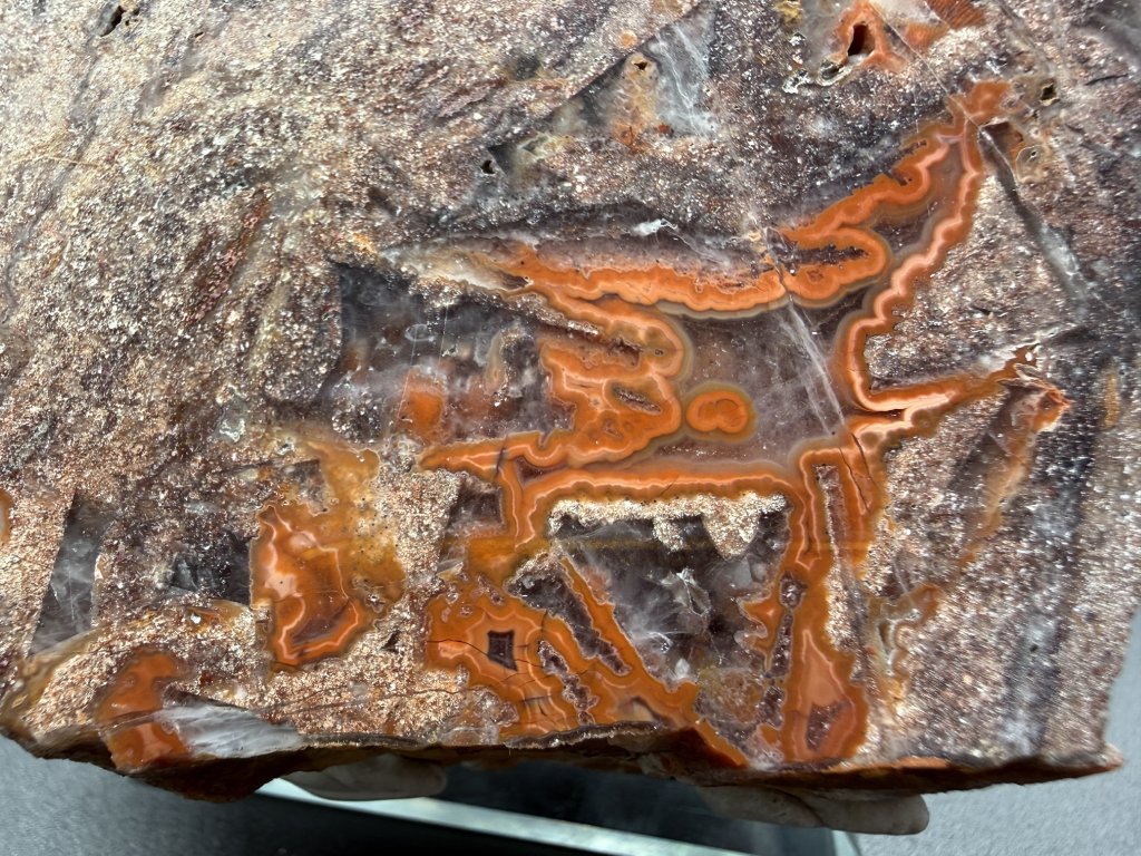 Leštěný vzorek achátu z Mýtinky z Krušných hor.