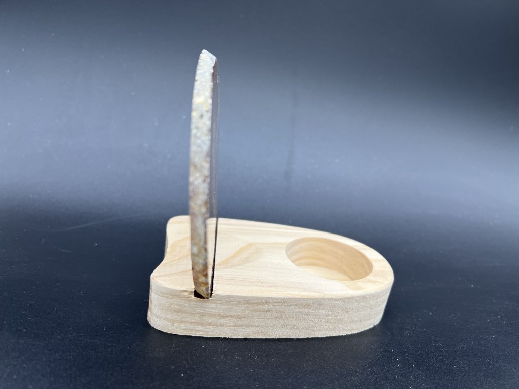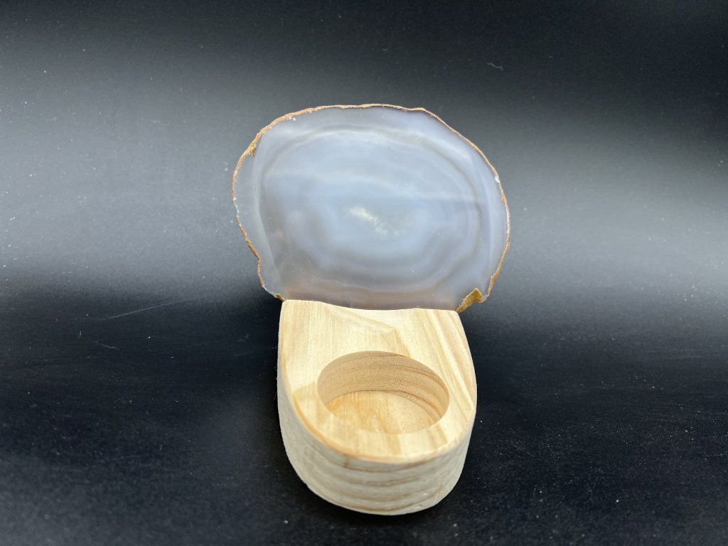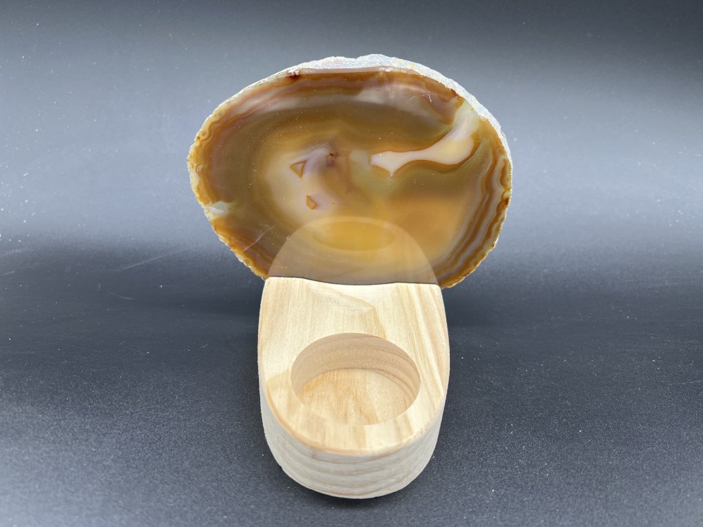 Achátový svícen s dřevěným podstavcem na čajovou svíčku