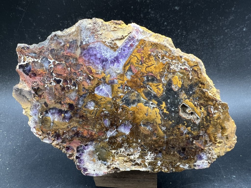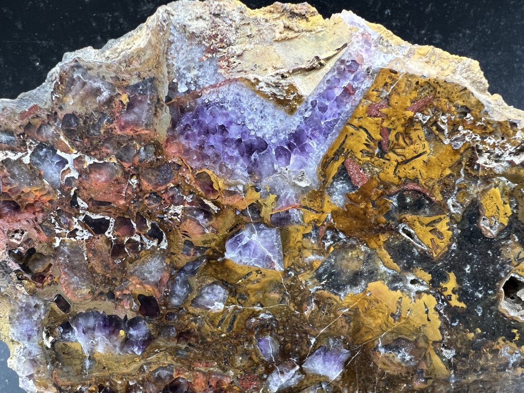 Leštěná ukázka ametystu s limonitem z Ametystové Halže.