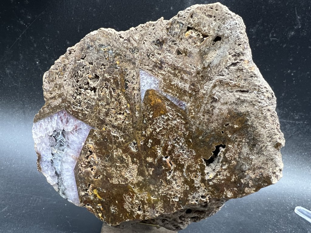 Leštěná ukázka ametystu s limonitem z Ametystové Halže.