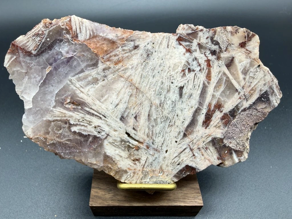 Leštěný vzorek perimorfózy po lištovitých minerálech z lokality Mýtinka.