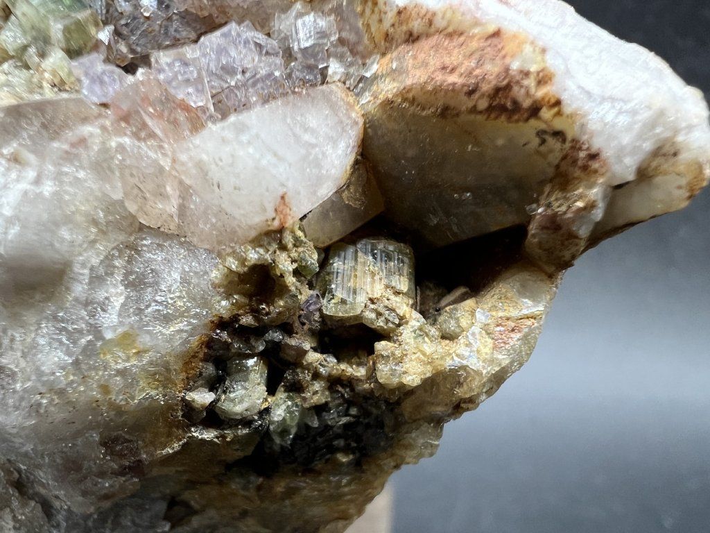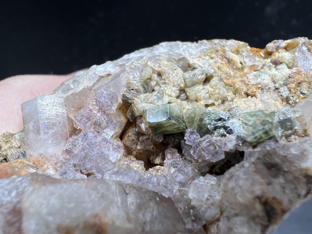 Hezká ukázka apatitu spolu s fluoritem z povrchové žíly Lukáš v Krupce.