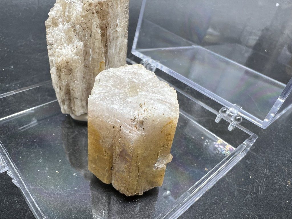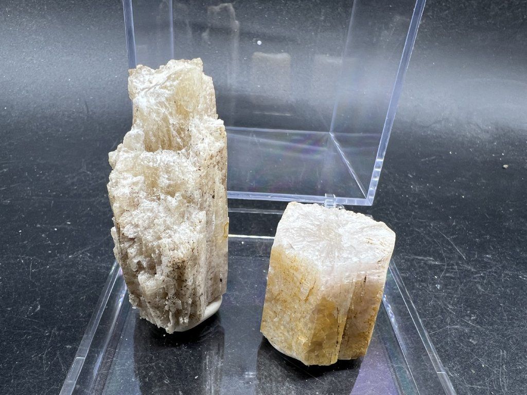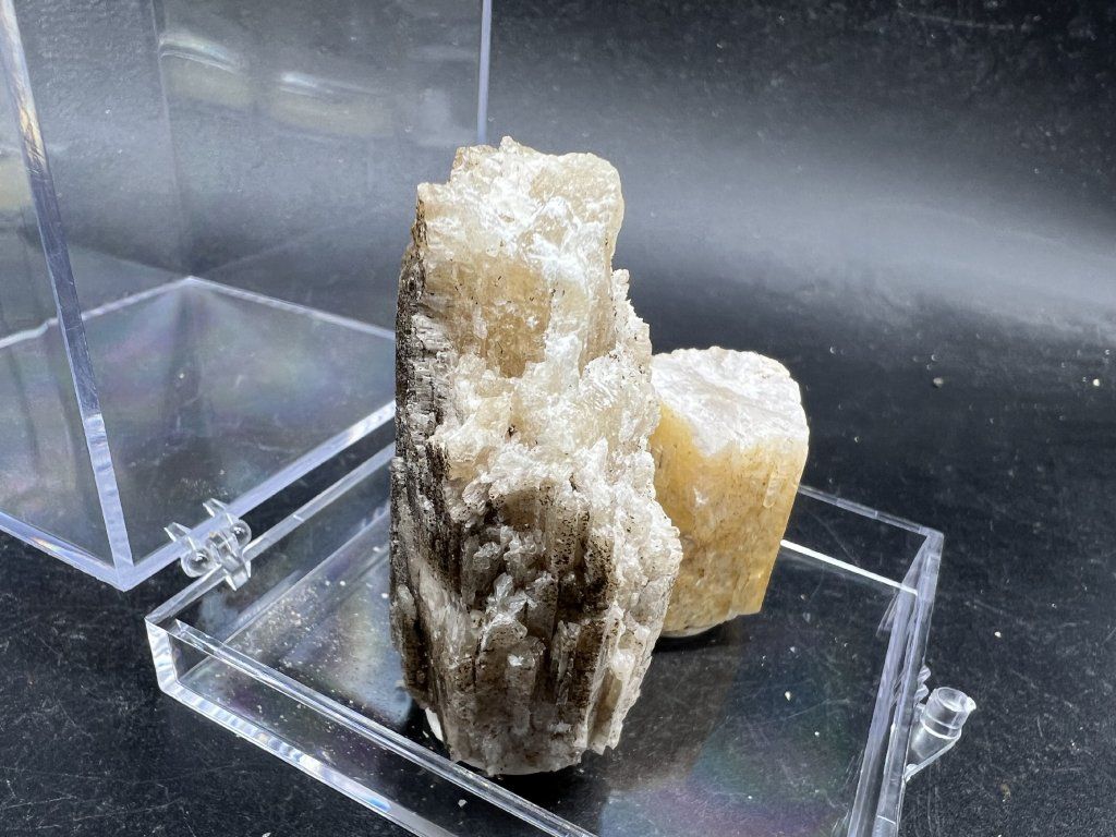 Pěkný vzorek dvou aragonitů. Cena za oba kusy včetně krabičky.