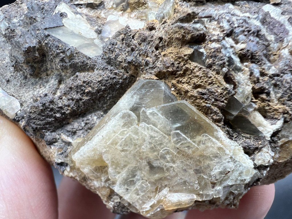 Vzorek barytu na pískovci z okolí Děčína.