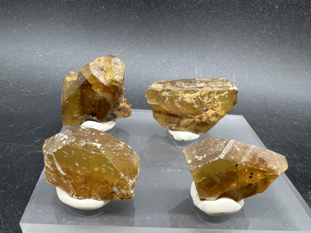 Vzorky krystalů barytu umístěné na podstavci z lokality Letná v Teplicích. Cena je včetně podstavce a všech vzorků.