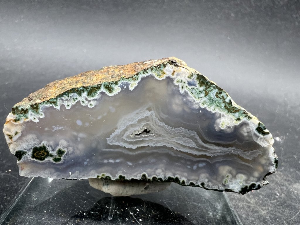 Velikost vzorku: 5,5x5,5x2 cm.Hroznový achát (nebo také hroznový chalcedon) je minerál, jež tvoří kulovité agregáty připomínající hrozny vinné révy. Jsou pro něj typické...