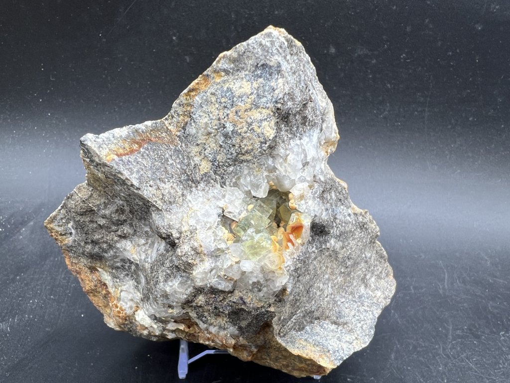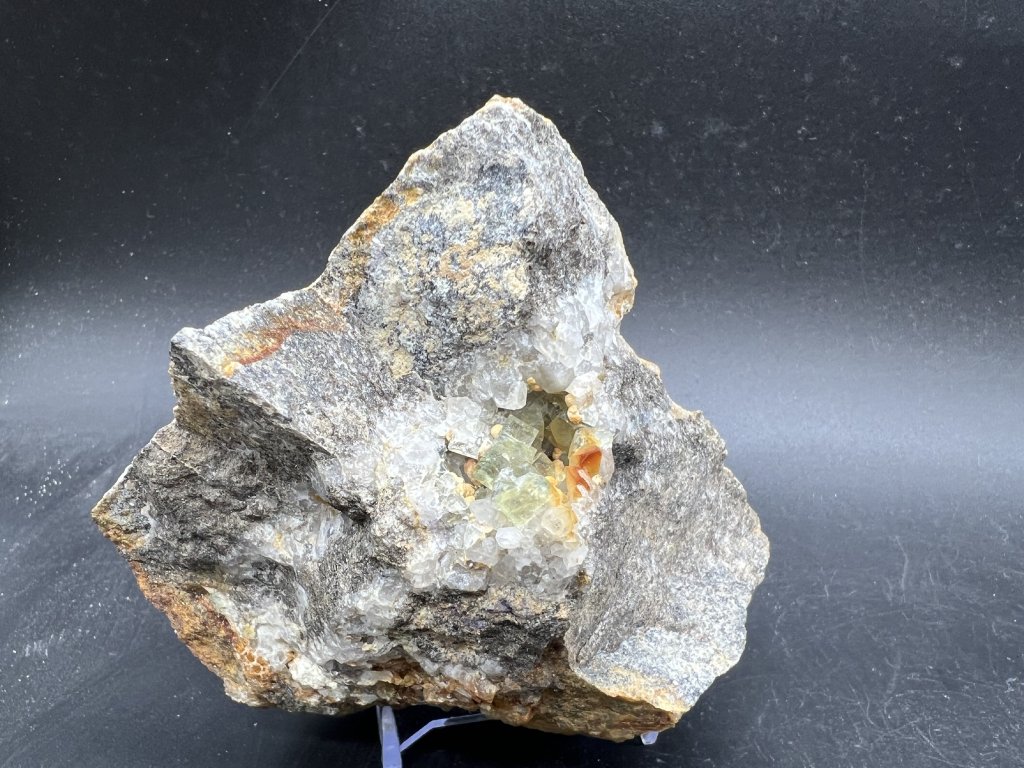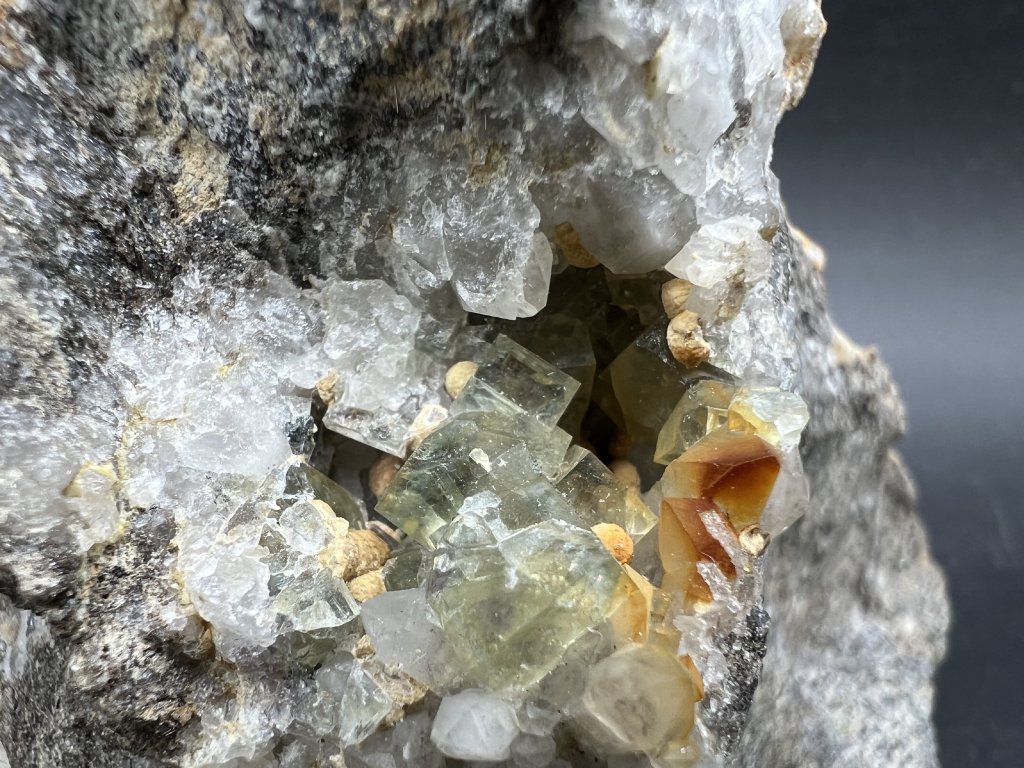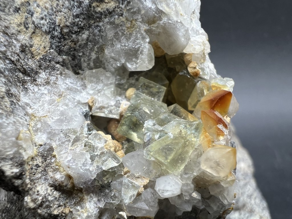 Vzorek křemene spolu s fluoritem a dolomitem z Krupky.