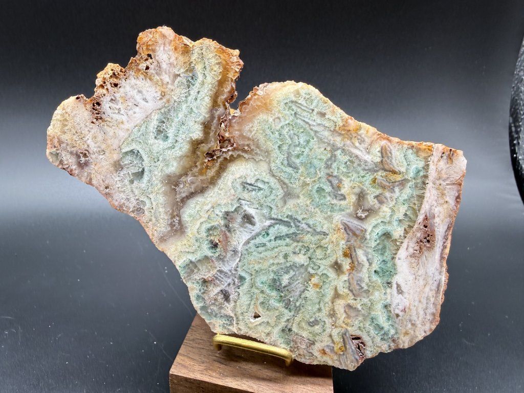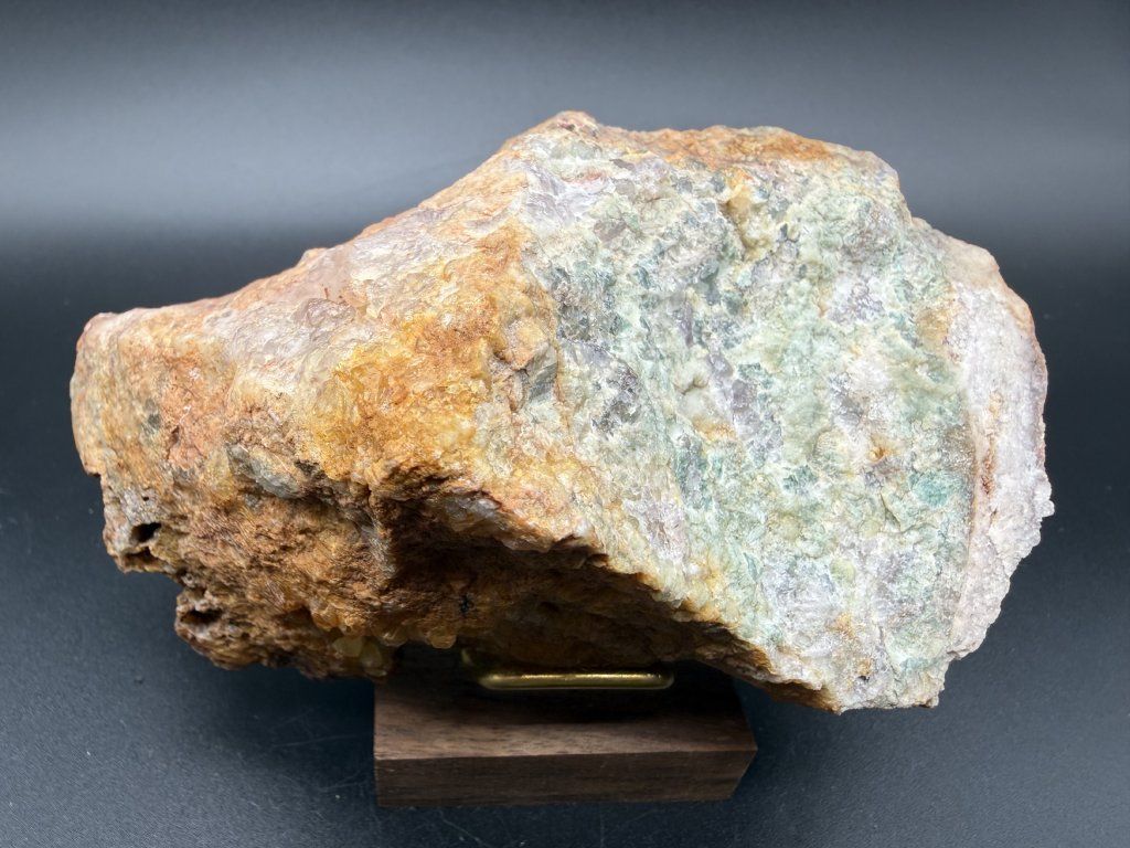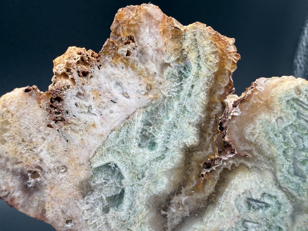 Ukázka leštěného fluoritu z nejmenšího těženého fluoritového ložiska v Čechách.