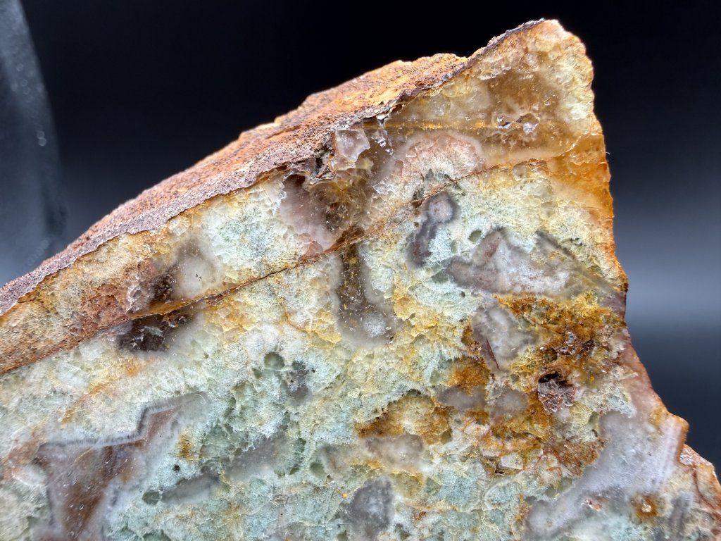 Ukázka leštěného fluoritu z nejmenšího těženého fluoritového ložiska v Čechách.