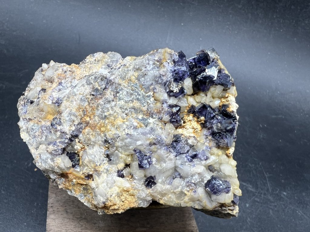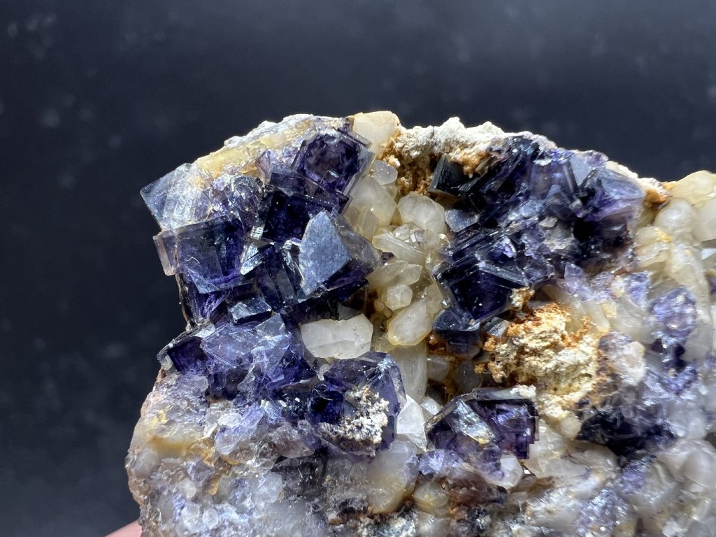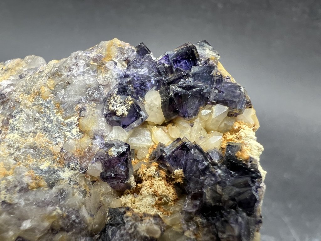 Estetická ukázka fluoritu na křemeni spolu s cinvalditem z lokality Cínovec.