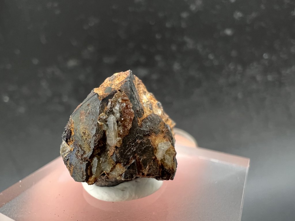 Volné krystaly kasiteritu z české strany Cínovce. Cena je včetně podstavce.