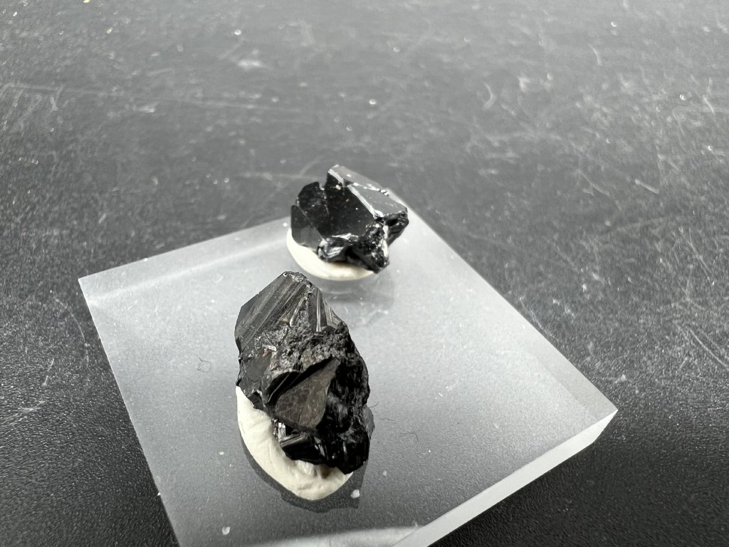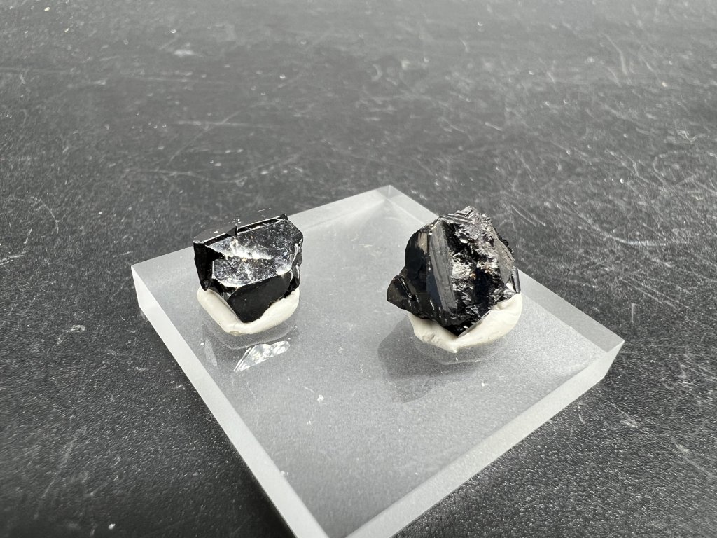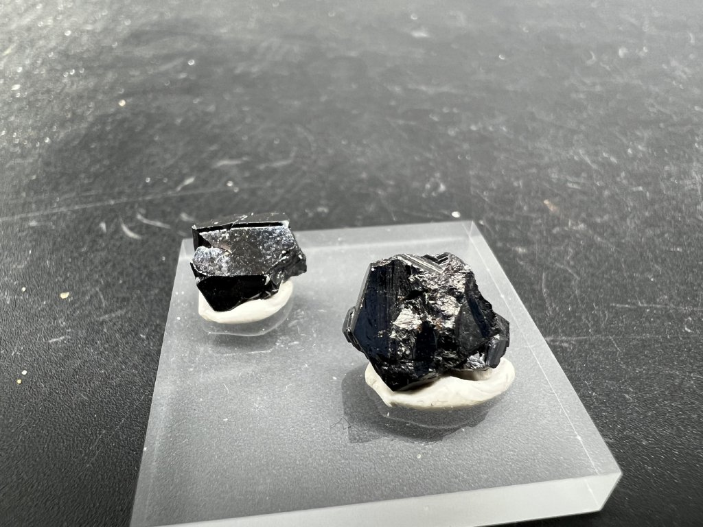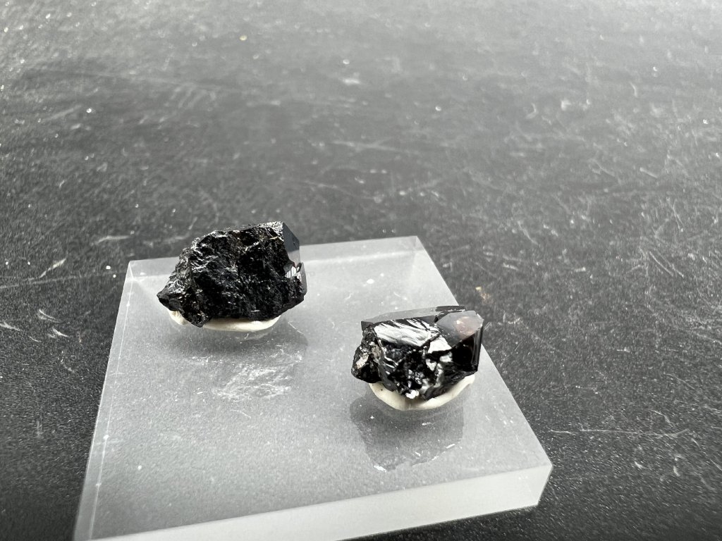 Volné krystaly kasiteritu z české strany Cínovce. Cena je včetně podstavce.