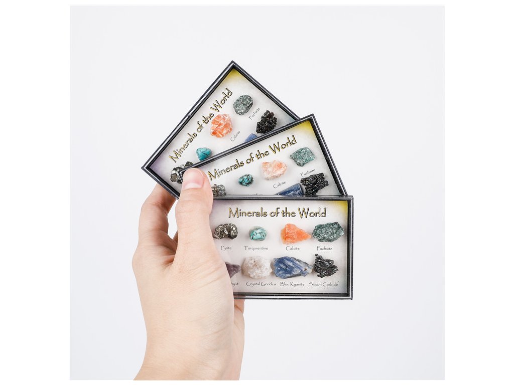 - Obsahuje pečlivě vybrané vzorky minerálů, z nichž každý je jedinečný.