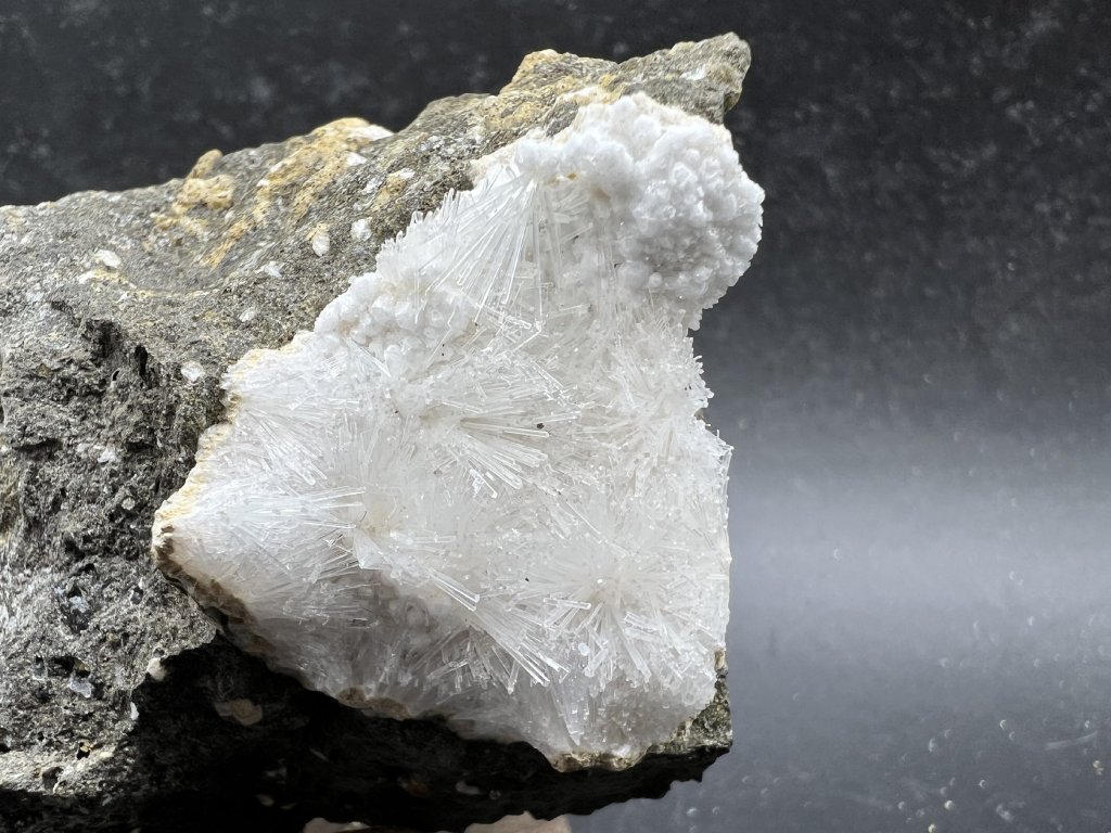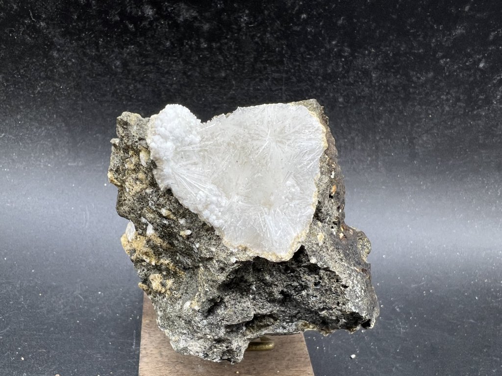 Vzorek natrolitu s drobným analcimem z lokality v Českém středohoří.