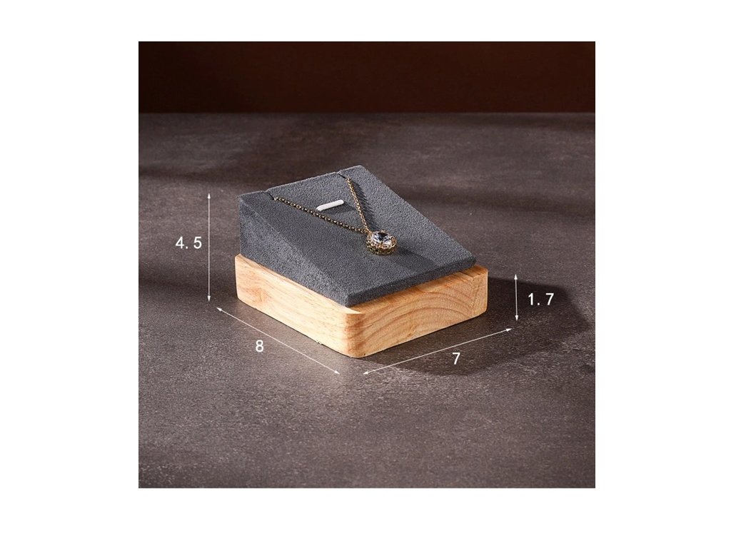 Horní část je potažena měkkým materiálem, který chrání šperky před poškozením, zatímco pevná dřevěná základna zajišťuje stabilitu a dlouhou životnost.