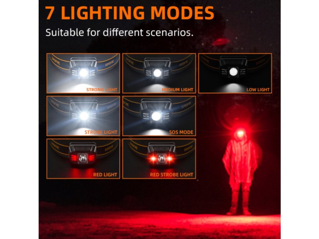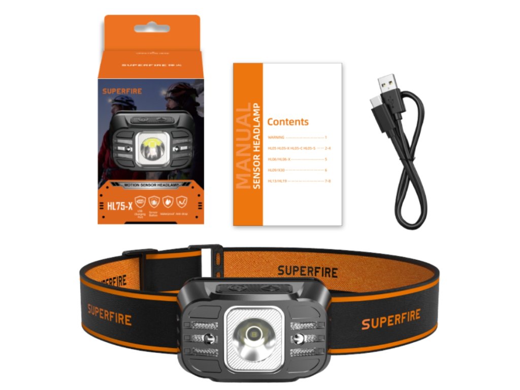 Čelovku Superfire HL75-S zapnete a vypnete jednoduše mávnutím ruky před chytrým pohybovým senzorem. Se svými 7 módy svícení a září neuvěřitelných 350 lumenů je pro vás výkonným pomocníkem při venkovních aktivitách, navíc v jakémkoli počasí díky odolnosti vůči prachu a vodě. Poloha svítilny je nastavitelná až do 45° úhlu. Model disponuje dvěma barvami LED žárovek - bílou a červenou. Mezi módy svícení je také praktický SOS signál. Součástí balení je svítilna, nabíjecí kabel typu USB-C, stahovací pás a manuál.