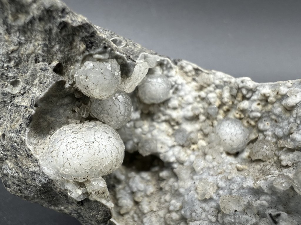 Dutina kulovitých agregátů zeolitu thomsonitu z lokality Folknáře u Děčína.