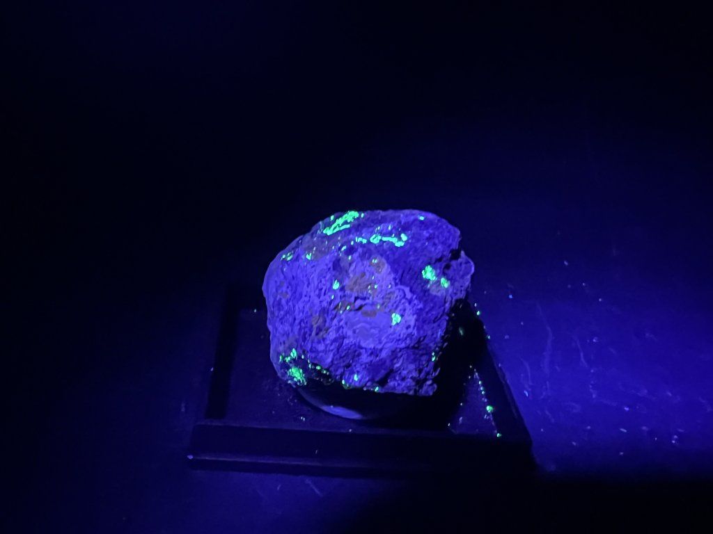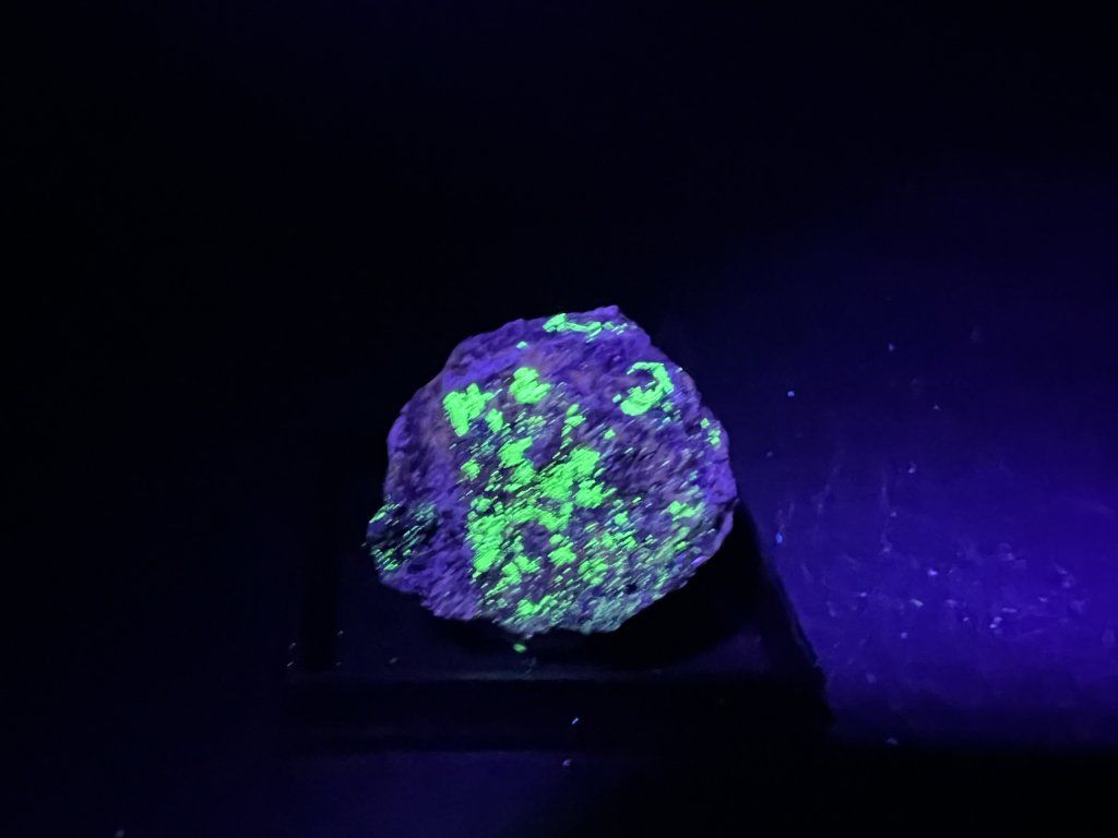 UV aktivní vzorek torbernitu z lokality Vrchoslav nedaleko od Krupky. Cena včetně krabičky. Použito toto UV světlo.
