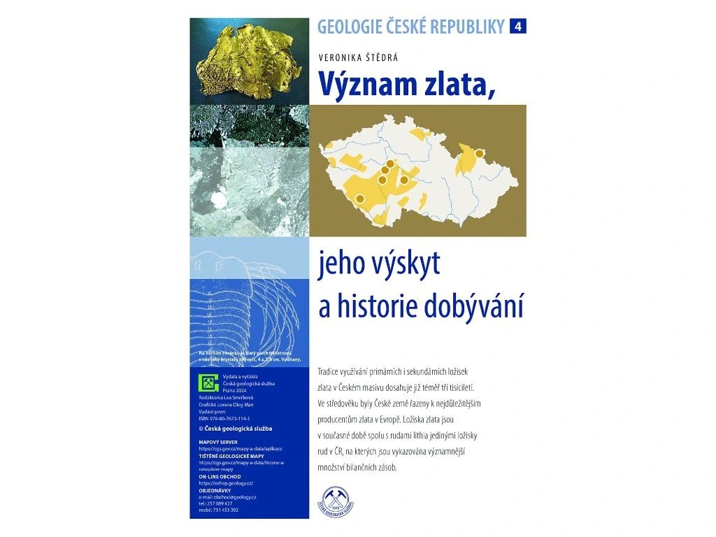 Zlato prostupuje celými našimi dějinami a mělo zásadní vliv na hospodářský rozvoj českých zemí. Čtyřstránková publikace přibližuje nejen historii dobývání a využívání zlata, ale také ukončení jeho těžby a průzkumu na přelomu 80. a 90. let. Zaměřuje se také na zlato jako strategickou surovinu a na geologické typy zlatého zrudnění v ČR.