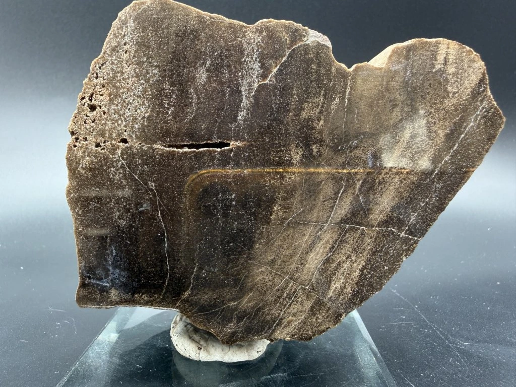 Leštěný vzorek zkamenělého dřeva z okolí obce Líně u Plzně.